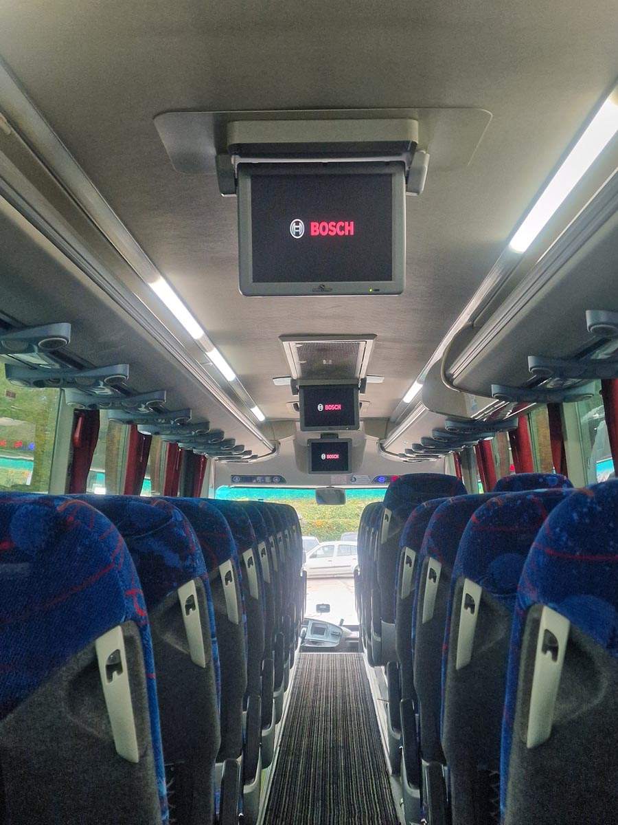 - Capacité de 53 places + siège guide ou pour le deuxième chauffeur si besoin d’un double équipage