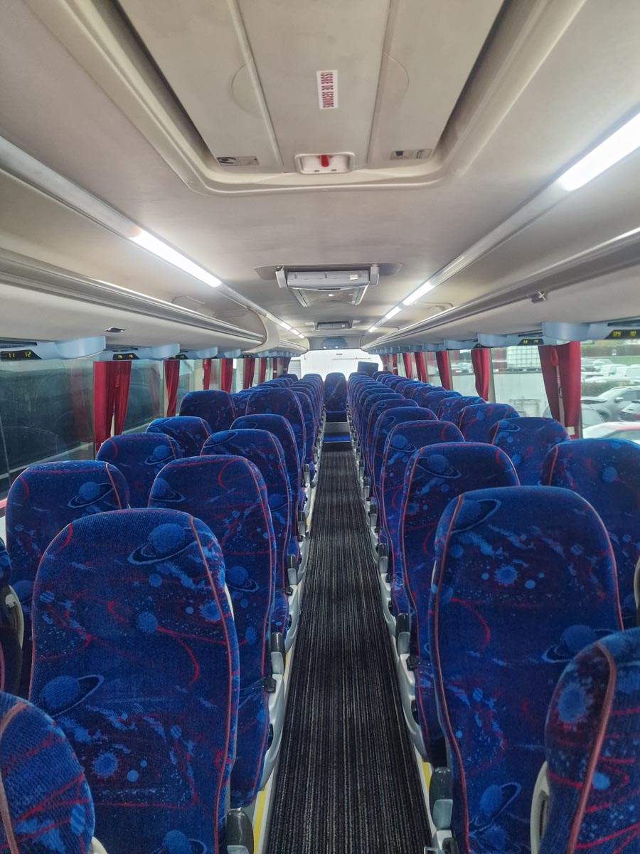 - Capacité de 59 places + siège guide ou pour le deuxième chauffeur si besoin d’un double équipage